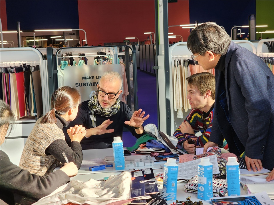 更值得一提的是,,,,这次我们所带的产品有大宗的丝绸类高端新产品,,,,契合春夏日高端客人对产品的需求,,,,这些产品中90%以上是含有环保元素的,,,,与目今纺织产品可一连环保理念相符。。理念与设计的碰撞,,,,让本次参展产品中的8款产品被组委会专家团队选为盛行趋势样本产品。。